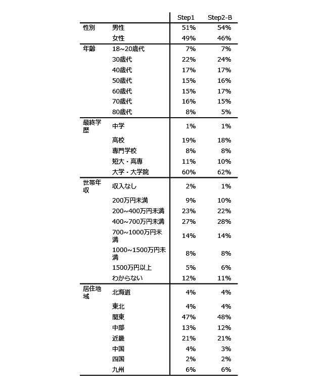 Step1およびStep2-Bの回答者の属性を図表3に示す。