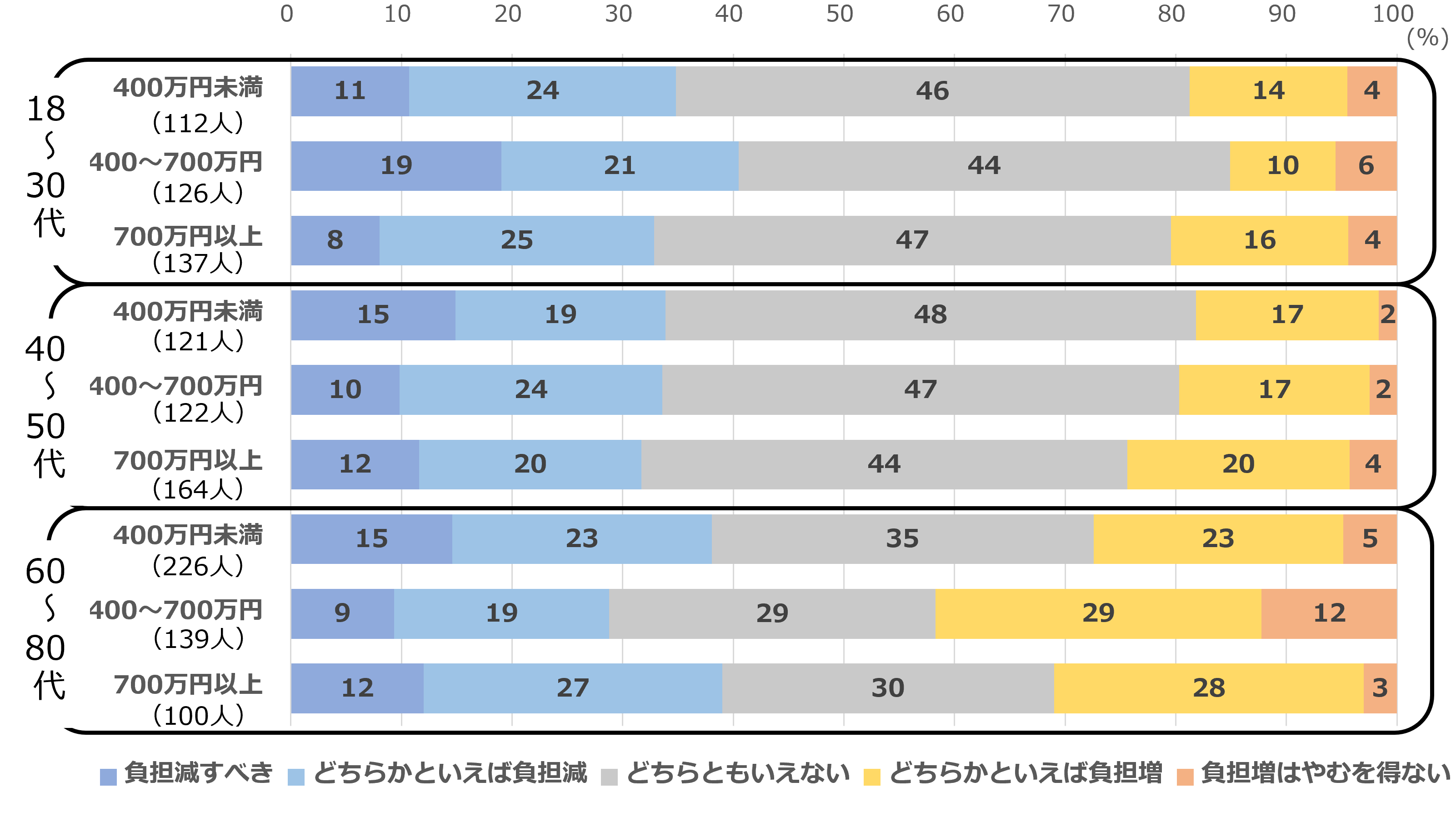 図表8 年齢と世帯年収別の国民負担に対する考え