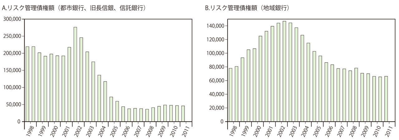 English version NIRAオピニオンNo.4 2011.10.18 日本の金融システムに隠されたリスク この記事は分で読めます シェア Tweet 星岳雄 カリフォルニア大学サンディエゴ校教授/総合研究開発機構(NIRA)客員研究員 概要 リーマンショックや欧州債務危機の発生により欧米諸国の金融システムが動揺をきたしたのに対し、日本の金融システムは一見安定しているかに見える。しかし、日本の金融システムが内包する信用リスクや利子率変動リスクは、震災からの復興を目指す日本経済に思わぬダメージをもたらす可能性もある。このようなリスクの顕在化を回避するために、直ちにとるべき対策について提言する。 PDFで読む (581.6KB) English(PDF) (150.8KB) INDEX 日本の金融システムが内包するリスク 不良債権は減少しているように見えるが 中小企業救済のための「監督緩和」 金融円滑化法による隠れ不良債権のさらなる増加 銀行の信用リスクは見かけよりもはるかに大きい 多額の国債保有による利子率変動のリスク 1日も早く金融監督の正常化と中期的財政健全化計画の確立を 日本の金融システムが内包するリスク ギリシアから始まった政府債務危機は他のヨーロッパ諸国にも飛び火して、さらにはその政府債を大量に保有する金融機関の健全性をもおびやかすようになった。ヨーロッパでは大銀行も含めた多くの銀行が資金調達の問題に直面しており、2008年秋のような金融危機の再燃が危惧されている。また、金融危機の影響からまだ完全には脱しきっていない多くのアメリカの銀行も困難に見舞われている。ヨーロッパやアメリカの金融システムの問題に比べて、日本の金融システムは安定しているかに見える。もともと日本の金融機関は、先般の金融危機の引き金になった危ない証券化商品などをあまり保有していなかったし、不良債権の額も増えていない。しかし、以下で論じるように、公表された不良債権額は実勢を反映したものではなく、実際は金融危機以降、多額の隠れ不良債権が発生していると推察できる。また、金融機関による巨額の国債保有は、利子率変動のリスクを高くしている。日本の金融システムが内包する信用リスクおよび利子率変動のリスクを直視して、対策を考えておく必要がある。 不良債権は減少しているように見えるが 図表1は、大銀行(都市銀行、旧長信銀および信託銀行、2011年現在11行)と地域銀行(地方銀行および第2地方銀行、2011年現在106行)のそれぞれについて不良債権額の推移を示したものである。大銀行のリスク管理債権額を見ると(図表1A)、2002年3月期をピークに急激に不良債権処理が進み、2006年3月期以降は5兆円以下にとどまっている。いわゆるリーマンショック後、不良債権額は若干上昇したものの、2009年9月期以降はリスク管理債権額は減少している。地域銀行でも、2002年3月期をピークに大銀行に比べると緩やかではあるが不良債権処理が進み、2008年3月期には7.5兆円を切った(図表1B)。2008年9月期にはリスク管理債権が0.4兆円ほど増加したが、その後はすぐに減少に転じた。世界的不況の影響はほとんど見られない。 こうして数字だけを見ると、日本の金融システムはアメリカ発の金融危機と世界的不況の影響をほとんど受けずに、健全性を保っているかのように見える。大銀行でこそ不良債権額は増加したものの、地域銀行では、不良債権額が不況の前よりも減少している。これは、不況が世界的な規模のものであり、日本経済も実体面では深い打撃を受けたことを思い起こすと、不思議と言わざるを得ない。 どうして日本を含めた世界の多くの国が不況に陥ったときに、日本の金融機関の不良債権は増加しなかったのか。最大の理由は日本の金融監督政策の変化にある。世界的な金融恐慌が深刻化する中、金融庁は中小企業金融の「円滑化」の名の下に、経営が悪化した中小企業にも融資を続けるように銀行に要請した。その背後には当然、中小企業を重要な支持基盤とする政治家達からの働きかけがあったことは想像に難くない。銀行の中小企業への救済融資を容易にするように、金融庁は様々な方法で銀行の健全性の監督体制を緩めていった。その一環として、不良債権の分類の仕方が変化した。かつては不良債権の一部とすることを要求されたような貸出を正常債権とすることができるようになったのである。 図表1 リスク管理債権額の推移(単位:億円) (出所)金融庁「平成23年3月期における金融再生法開示債権の状況等」表6より作成 図表1 リスク管理債権額の推移(単位:億円) (出所)金融庁「平成23年3月期における金融再生法開示債権の状況等」表6より作成 中小企業救済のための「監督緩和」 最初の大きな変化は、金融危機のピークを象徴したリーマン・ブラザーズの破綻から2か月弱後の2008年11月7日に起こった。金融庁は『中小企業向け融資の貸出条件緩和が円滑に行われるための措置』を策定し、リスク管理債権の一項目である貸出条件緩和債権の定義を狭めた(注1)。具体的には、それまでの『