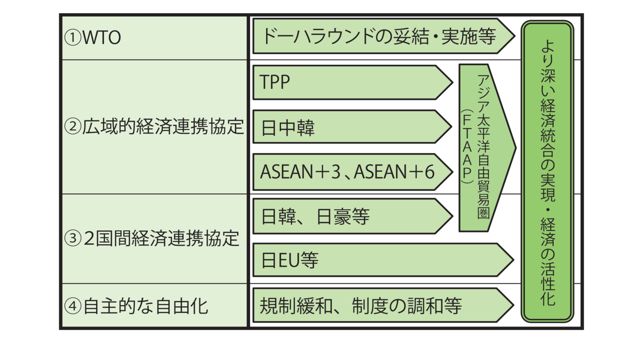 English version NIRAオピニオンNo.6 2012.01.18 なぜTPPなのか国際通商システムの視点から考える この記事は分で読めます シェア Tweet 伊藤元重 総合研究開発機構(NIRA)理事長 概要 TPPへの参加を巡って国論を二分する論争が行われたが、正確な情報や分析に基づいた本質的な議論が行われたとは言い難い。TPPなどの地域経済連携はWTO体制を補完し、より深い経済統合の実現を目指すものであり、日本の成長戦略の中核となるものである。本稿では、国際通商システムの視点から「なぜTPPなのか」を解説し、日本がTPPに背を向ける選択はあり得ないことを論じる。 PDFで読む (1.3MB) English(PDF) (245.5KB) INDEX 21世紀型の通商交渉はどんな姿になるのか TPPが出てきた背景はなにか TPPへの参加意欲は日中韓の経済連携を促す 通商交渉における「連鎖反応」 日本がTPPに背を向ける選択はあり得ない 日本を開かれた社会にするために 21世紀型の通商交渉はどんな姿になるのか 20世紀の後半の50年、世界経済は貿易自由化の推進によって大きく成長した。その中心にあったのが、GATT(関税及び貿易に関する一般協定)とそれを受け継いだWTO(世界貿易機関)である。 WTOは優れた制度である。世界の多くの国を取り込んだ多国間(マルチ)の仕組みであることがこの制度の強みである。すべてのメンバー国に無差別の対応を求める最恵国待遇(MFN)原則は、世界全体に自由化交渉の利益を広げる上で大きな役割を果たした。WTOの制度の下で、先進工業国の関税率は非常に低い水準に下がった。新興国も積極的に自国市場を開くことによって、経済成長を実現しつつある。 しかし、21世紀に入り、WTOの機能の限界が顕著になってきた。先進国と新興国の意見が対立して交渉が進まないドーハラウンドはその象徴である。より多くの国が参加して、より踏み込んだ自由化を進めようとすれば、交渉は困難になるのは避けられない。 もちろん、WTOの重要性が失われたわけではない。WTOのルールによって、各国が手前勝手な通商政策を行えないようになっているからだ。安易に関税率を上げたり、違法性のある手法で貿易を制限することは、WTOのルールで禁じられている。多くの国はこのルールを尊重している。また、2国間で貿易問題の紛争が生じたとき、WTOはその紛争の調停役を果たしている。この紛争調停機能はますます重要になっているように思われる。 日本がWTOを支えていくべきであることは言うまでもない。難しい状況に陥っているドーハラウンドについても、なんとか合意に到達する努力を続けていかなければいけない。ただ、WTOだけに今後の世界の通商システムの命運を委ねることができないことは明らかだ。WTOを補完する何らかのメカニズムが求められている。 20年ほど前から、世界の多くの地域で自由貿易協定(FTA)や経済連携協定(EPA)が次々に締結されてきたのは、こうした変化を背景にしたものであった(図表1)。経済関係の深い近隣諸国と貿易自由化を迅速に進めることができることがその利点である。また、関税撤廃という国境措置の自由化だけでなく、より踏み込んだ自由化や国内制度の調整にまで交渉を広げることで、「より深い統合」(deeper integration)を実現することが期待された。少し乱暴な整理ではあるが、WTOが多国間を取り込んだ広く薄い自由化を達成する上で優れた制度であるとすれば、FTA・EPAは特定の国や地域に限定した狭く深い自由化を実現していく上で優れているのだ。 21世紀に入り、各国は相互に踏み込んだ自由化を進めていくことで、より深い統合を実現することを迫られている。そして地域経済連携を突破口にして、それをWTOに広げていく。この2つのアプローチの補完性を最大限に活用していくことが、21世紀型の自由化交渉となるだろう。 図表1 世界のFTA・EPAの発効件数 1990年代以降発効件数が急速に拡大 (注)2011年6月1日現在。(出所)JETRO『世界貿易投資報告』(2011年版)を基に作成(原資料はWTOホームページ)。 TPPが出てきた背景はなにか 地域経済連携を進めていくと、特定の国や地域の間でだけ連携が高まり、ブロック経済化するという懸念を指摘する人がいる。しかし、当面のところ、その心配はないようだ。1930年代の世界大恐慌の時代に起きたブロック経済化は、米国、英国グループ、フランスグループなど、特定の国や地域が自分たちの周りに高い関税障壁を設け、相互に排他的な経済圏を設けたものである。 現在、世界のあちこちで進展している地域経済連携の流れが、こうしたブロック経済化とはまったく異なるものであることは明らかだ。WTOの下で、各国の関税は低くおさえられ、1930年代のように特定の地域に対する関税が大幅に引き上げられることはない。また、各国・地域の間で200近くのFTA・EPAが締結され、多くの国が重なり合う形で地域経済連携が進んでいる。地域が分断されるブロック経済とはなっていないのだ。 コロンビア大学のバグワッティ教授の表現を借りれば、地域経済連携が世界全体の自由化の障害となる「