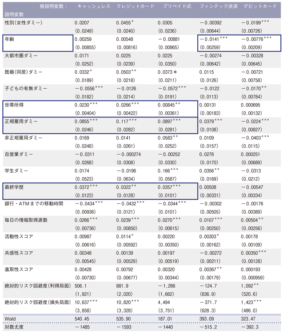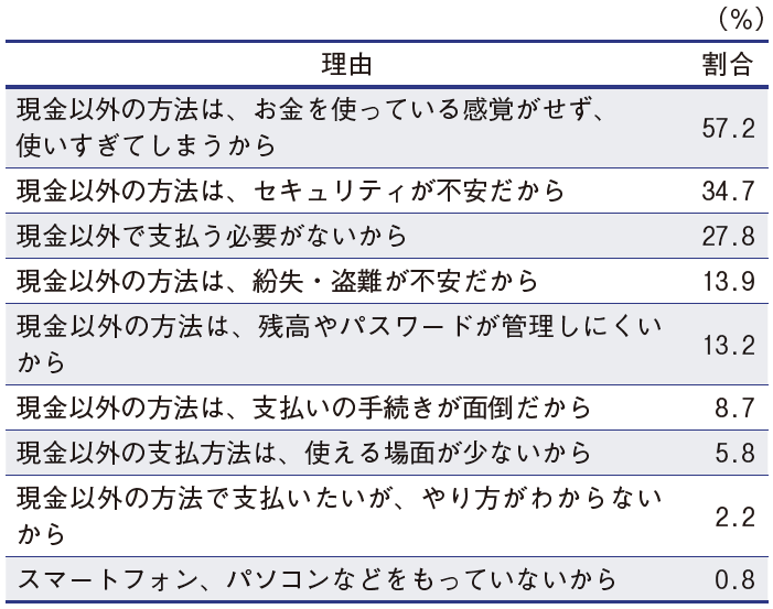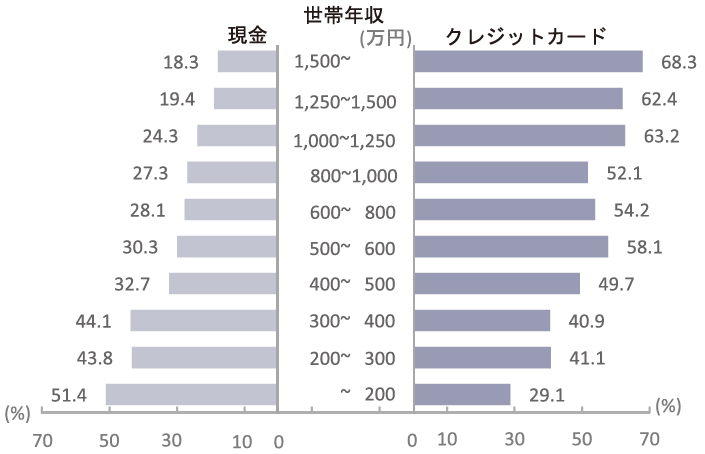 NIRAオピニオンNo.42 2019.02.01 キャッシュレス社会に向けて何をすべきか消費者の決済実態分析を踏まえて この記事は分で読めます シェア Tweet 翁百合 NIRA総合研究開発機構理事/日本総合研究所理事長 概要 日本政府はキャッシュレス推進に乗り出した。現在約2割のキャッシュレス決済比率を2倍に引き上げることを目標としている。NIRAが実施したアンケート調査では、同比率を約5割と算出した。政府の数値では除かれる銀行口座間送金等を含むため、政府推計より高い。 日本のキャッシュレス化は想定以上に進んでいるともいえるが、アンケート調査結果を詳しく分析すると、いくつか課題もある。所得や学歴が高く、年齢が30代以上の人に、キャッシュレスがより浸透している。また、国民全般に根強い現金嗜好が確認され、特に、所得の低い人ほど、現金での支払いを希望する比率が高い。地域によってキャッシュレス化の進展にもかなりの違いがある。さらに、ポイントサービスは、所得の高い層がその恩恵を受けている傾向がみられる。 これらの点を踏まえると、国民全体にキャッシュレスを浸透させるには、低所得者にとっても利便性の高いサービスの普及など、利用者の視点に立った多面的できめ細かい政策を推進する必要があることがわかる。すなわち、キャッシュレス決済の実態把握と定点観測、郵便・医療介護など公的サービスのキャッシュレス化実現、民間企業による付加価値の高いサービス提供に向けた「競争」と、個人間小口送金など社会インフラとしてインターオペラビリティの高いサービス構築に向けた「協調」の促進、金融・ITリテラシー教育の充実などが求められている。これらの施策の実施により、利便性の高いデータ利活用社会の構築を目指すべきだ。 (お詫びと訂正) 2019年2月1日公表の数値に誤りがありましたので、お詫びいたします。詳しくは正誤表をご覧ください。本サイトの数値は、修正前のものとなっておりますので、ご留意ください。(2024年1月4日追記) PDFで読む (1.3MB) 正誤表(2024年1月4日) (404.2KB) INDEX はじめに 1.消費者のキャッシュレス決済の特徴 日本のキャッシュレス決済比率は約5割 生活に余裕がある層ほどキャッシュレス フィンテック決済は若い層に浸透 個人間送金と公的サービスの支払いに遅れ 地域による格差が大きい 根強い現金嗜好 ポイント還元には逆進的傾向も 2.正確な実態の把握と利用者視点の施策を 消費者の行動の実態調査が必要 公的サービスのキャッシュレス化は必須 インターオペラビリティの高い個人間送金サービスの確立 高齢者などへの金融リテラシー教育も データを活用した、付加価値の高いサービスの実現 マイナンバーの一層の活用も視野に はじめに 日本は現金社会といわれている。確かに、日本では、現金がよく使われているが、そのことに私たちは慣れていて、現金決済が不便だと感じることは少ないかもしれない。しかし、世界全体は徐々にキャッシュレス社会に向かっており、スウェーデン、インドなど、多くの国々の政府もキャッシュレスを推進している。それでは、なぜキャッシュレス社会に向かう必要があるのか。 第1に挙げられるのは、物理的に現金を使わずに済むことのメリットを享受することである。そのメリットとは、「生産性向上」と「利便性向上と消費の活性化」であろう。 生産性の向上については、例えば、レストランや小売店などの中小企業は、1日の「締め」でレジの精算などに、人手と時間がかかる。キャッシュレス化は、人手不足の日本にとって、中小企業の生産性の向上につながる重要な取り組みといえそうである。ちなみに、紙幣(銀行券)を印刷するために、日本では独立行政法人国立印刷局が設立され、多くの人員で多大なコストをかけて印刷を行っているが、このコストを削減することも可能になるだろう(注1)。 また、生活の利便性向上と消費の活性化の観点からいえば、現金を持ち合わせていなくてもクレジットカードやデビットカードを活用できれば、買い物がしやすくなる。また、交通系プリペイドカードは何より切符を買う手間が省けて便利である。これらのカードにポイントなどが付与されていれば、お得感もあり、さらに消費が促進される。特に最近、日本の消費活性化の視点から注目されているのは、インバウンドの拡大である。アジア諸国をはじめ、多くの国々から外国人が観光のために日本を訪れているが、これらの国の人々は、キャッシュレスに慣れている人たちも多い。そうした外国人観光客に、簡単な決済手段で多くの買い物をしてもらえれば、日本の消費拡大につながる。 しかし、実はキャッシュレス社会が好ましい理由は、もう1つある。それは、決済関連のデジタル「データ」を活用した新たなビジネスを展開できる、という点である。現在、政府は、「Society 5.0」を目指し、日本全体として、インターネット・ネットワークを活用しつつ、決済や医療などの各種のデータを分析