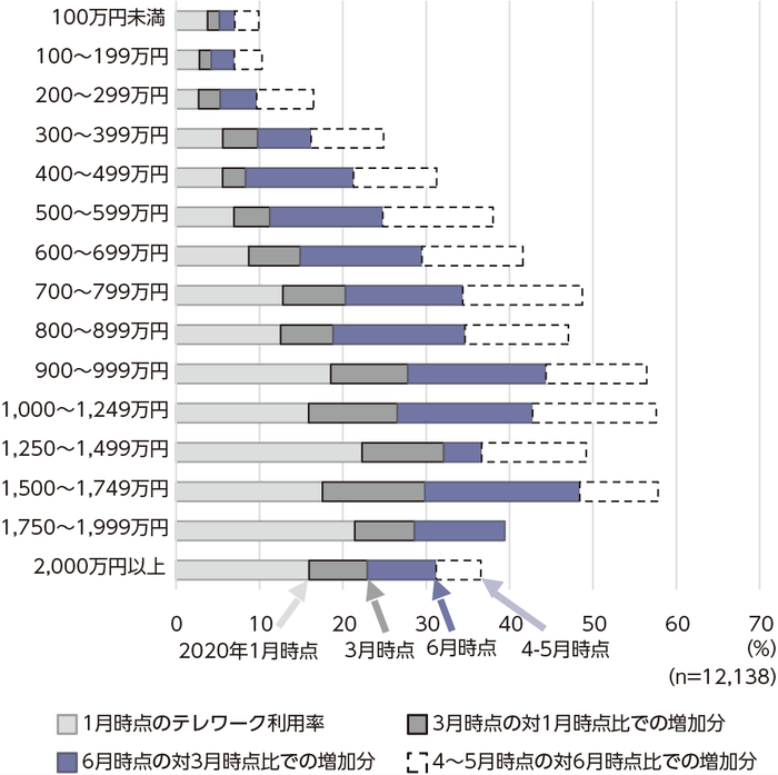 English version NIRAオピニオンNo.53 2020.09.15 コロナショックが加速させる格差拡大所得格差とデジタル格差の「負の連鎖」 この記事は分で読めます シェア Tweet 大久保敏弘 慶應義塾大学経済学部教授 概要 近年、グローバリゼーションが進行する中、世界的な所得格差の拡大や中間層の所得の低迷が著しい。日本もその例外ではない。今回、慶應義塾大学大久保敏弘研究室とNIRAが実施した「テレワークに関する就業者実態調査」の結果にも、その傾向は現れている。 現在の経済社会情勢は、感染症対策を起因とする経済的な不況の側面を有している。特にコロナ感染症対策により就業が困難となった業種や職種に負の影響が集中しており、所得の低い層ほど経済的な打撃が大きい。 また、今回の新型コロナウイルス感染症は、経済的な不況にとどまらず、技術革新の波を一気に引き起こし、一段の格差拡大につながるおそれがある。その背景には、テレワークの利用が所得格差に連動していることがある。すなわち、所得の高い人や大企業はテレワークや業務のデジタル化を積極的に進めており、今後生産性を伸ばすものとみられる一方で、所得の低い層や中小企業ではデジタル化の波に乗れていない。 このようにデジタル格差を通じた経済的な格差が著しく広がりつつある。新型コロナショックが、両者の負の連鎖を生む問題であることを念頭に、短期、中期、長期の視点から政策を整理する。 PDFで読む (1.3MB) PDF (English) (592.1KB) INDEX はじめに グローバリゼーションと所得格差 「一億総中流社会」とはほど遠い現実 コロナショックによる所得の減少 コロナ禍での「デジタル格差」 新技術による労働調整とコロナショックへの対応 コロナショックへの対応:格差の是正で負の連鎖を断ち切れ はじめに 今回の新型コロナウイルス感染症による不況が、これまでの経済不況と異なるのは、感染予防の観点から、業務や働き方のデジタル化が一気に進んでいることである。これまでも「AI(人工知能)で近い将来、雇用が奪われ、特定の職種がなくなる」という議論はあったが、その波が突如現れ、急速に、かつ、経済不況の状況の下で押し寄せている。デジタル化の波に対応可能か否かで、日本経済の明暗が分かれるかもしれない。 そこで、本稿では、NIRA就業者実態調査で得られたデータに基づいて、直近の就業者の状況を明らかにし、その政策課題と対応について提起していきたい。 グローバリゼーションと所得格差 第二次世界大戦後、自由貿易は世界的な潮流となった。自由貿易を推進する理論的支柱となったのが、伝統的な国際貿易理論における「比較優位」の考え方である。つまり、ある国の輸出産業は、得意分野の輸出に専念し、それ以外のものを輸入することで利益を上げることができる。一方、同国の輸入産業は安価な輸入品により打撃を受けるものの、消費者全体が安価な商品を多く購入することができるため、社会全体でみれば大きなメリットを得る。したがって、自由貿易は一国全体にとってプラスであり、国内での適切な分配政策を行えばよいことになる。 しかし、近年は、生産体制がグローバル化し、世界的なサプライチェーンが構築されたことで、伝統的な国際貿易理論が想定していた前提は大きく変わった。職種や工程間での国際分業が進み、輸出産業と輸入産業の区別が明確ではなくなった。職種間の所得格差が広がり、以前のような分配政策は難しくなっているのである。そのため、経済のグローバリゼーションに伴う国内の経済格差が、今日の大きな問題となっている。 最近の貿易理論(いわゆる、「企業の異質性の下での貿易理論」)では、生産性が企業ごとに大きく異なることに着目する。ごく一部の生産性が高い企業だけが製品を輸出して、貿易自由化の恩恵を受ける。一方で、他の企業(特に生産性の低い零細企業)は製品を輸出できない上、外国からの輸入品との厳しい競争にさらされ、生産性が低い企業は利潤を減らし、撤退することになる。 グローバリゼーションは大きく進んだものの、中小企業あるいは中間層、非熟練労働者では所得が低下し、疲弊している。富が一部の大企業や富裕層に集中する一方で、所得が低迷する中間層はフラストレーションをため込み、保護主義」や「自国第一主義」的な流れを加速させている。日本も例外ではない。かつて日本は終身雇用、年功序列賃金が主流で「一億総中流社会」だった。しかし、ここ20~30年ほどグローバリゼーションが進展し、製造業ではアジアに生産拠点が移り、日本国内は長らく産業空洞化に苦しんでいる。諸外国と同様に、中間層を構成する中小・零細企業、非正規雇用者の所得が低迷したままで、格差が広がっている。 こうした格差の実態は、慶應義塾大学大久保敏弘研究室とNIRAが行った12,000人ほどの就業者に対するコロナ禍での実態調査(注1)でも明らかになっている。以下では、この調査結果を紹介しながら、議論していく。 「一億