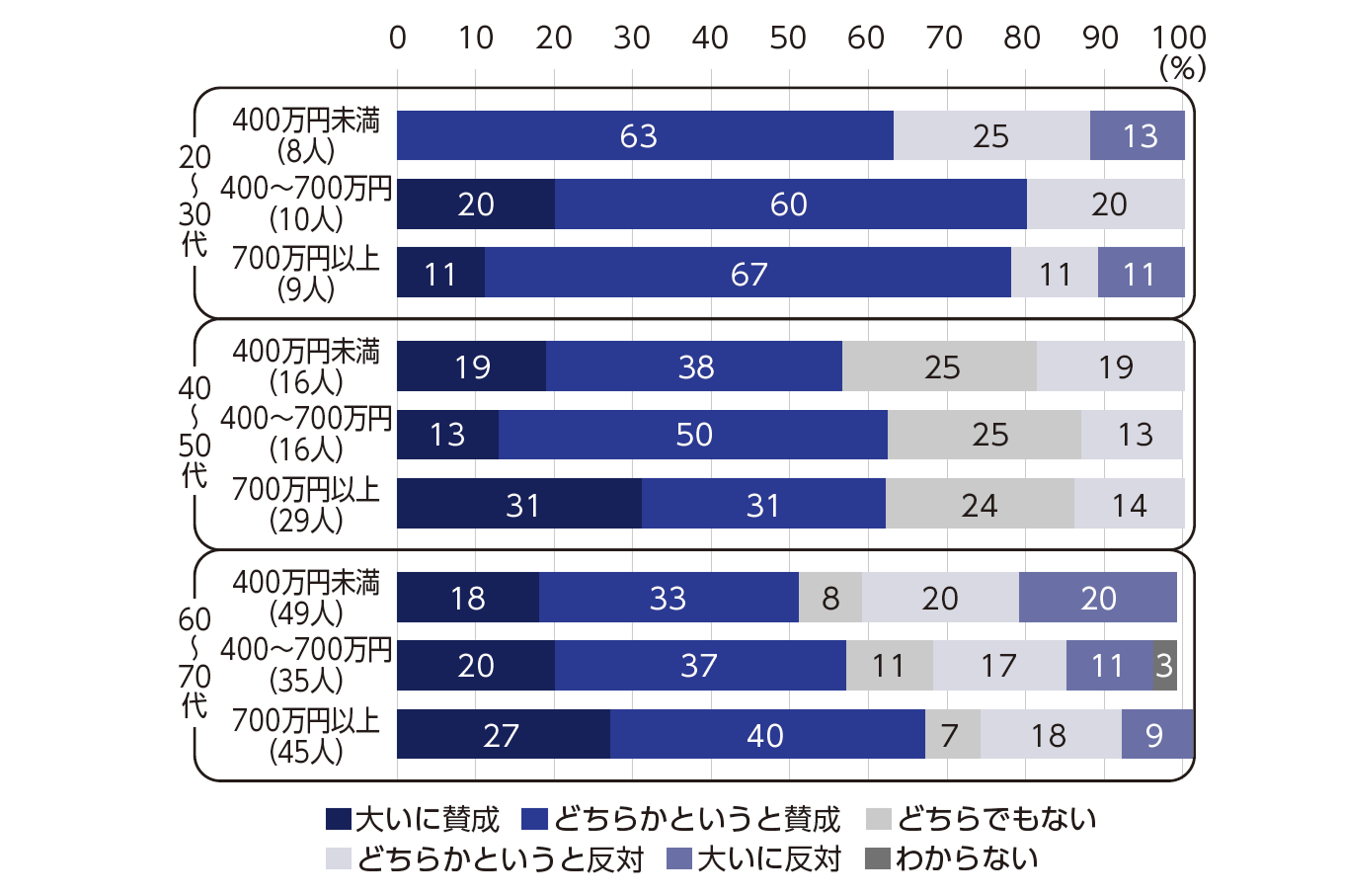 English version NIRAオピニオンNo.61 2022.03.03 高齢者の医療費負担増を人びとはどう受け止めているか熟慮・熟議型調査から考える(2) この記事は分で読めます シェア Tweet 翁百合 NIRA総合研究開発機構理事/日本総合研究所理事長 概要 2021年の法律改正において、後期高齢者(75歳以上)医療費の自己負担割合の引き上げが決定した。国民はこの改正を、実のところ、どう受け止めているのだろうか。 NIRA総合研究開発機構は、経済・社会のテーマに関する「世論」が、熟慮や熟議を経ることでどのような軌跡をたどるのか、を調査した。その中で、人びとは社会保障の問題に高い関心を示し、過半数の人が後期高齢者の自己負担の引き上げに賛成した。多くの国民にとって、社会保障の問題は、現在または将来の自分事として考えやすく、不安を持っているようだ。ただし、個人の状況によって賛否が分かれる点も留意しなければならない。人びとに受け入れられる医療政策を策定するためには、少数派の意見にも配慮しながら、世代を超えて納得できるやり方を探ることが極めて重要である。 手がかりになるのは、人びとの認識に見られた共通点だ。医療制度の持続可能性に対する懸念、医療費の無駄の削減といった効率性への認識、そして最も注目されるのが、医療費の負担割合を「年齢」で区切ることへの不満である。年齢ではなく負担能力で考えるべきだ、という「応能負担」の考え方が大きな支持を集めている。今後、「負担の分配」を考えていかなければならない中で、国民の合意を形成するためのアジェンダを提起する。 PDFで読む (1.1MB) PDF (English) (868.8KB) INDEX 社会保障は国民の関心が高く、自己負担の引き上げ賛成が過半である 明らかになった共通点 合意形成のために議論すべきアジェンダ 国民の声に応える NIRA総合研究開発機構では、2回のアンケート調査(以下[熟慮]とする)とオンラインインタビュー形式での議論(以下[熟議]とする)を組み合わせて、様々な重要な課題について議論を喚起するプロジェクトを実施している*。本稿では、本プロジェクトで最初に課題を提起した、「後期高齢者医療費の自己負担割合の引き上げ」という個別テーマに対する国民の意見や関心についてわかってきたことを取りまとめる。* プロジェクトでは、社会・経済に関する4つのテーマを選び、モニター登録型インターネット調査、およびオンライン座談会を実施した。インターネット調査は2回に分けて行われ、第1回目は、属性などの基本的情報や政策についての意見を調査した。第2回目では、人々の考えがどのように変化するかを調べるため、意見の異なる専門家(近藤克則氏、小塩隆士氏、西沢和彦氏)の論考を読んだ上で第1回調査と同じ質問に再度回答してもらった。これを熟慮型調査という。他方、第1回目の回答者のうち12名が同席する、Zoomを用いたオンラインでのインタビューを実施した。インタビューでは、熟慮型調査と同じ識者の意見を読み、また、互いの意見を聞き合った上で意見変化を観察した。これを熟議型調査という。調査方法・結果の詳細については、谷口将紀(2022)「人びとが受け入れ可能な政策ビジョンとは-熟慮・熟議型調査から考える(1)-」NIRAオピニオンペーパーNo.60、および川本茉莉(2022)「後期高齢者医療をめぐる熟慮・熟議型調査」NIRAワーキングペーパーNo.2を参照されたい。 社会保障は国民の関心が高く、自己負担の引き上げ賛成が過半である まず、1回目のアンケート調査で、政府に優先的に取り組んでほしい課題をたずねたところ、「年金・医療・介護」は26.8%を占め、最も優先すべき政策として挙がってきた。社会保障問題は、多くの国民にとって、現在、または将来の自分事として考えやすく、不安を持っているテーマであることが明らかになった(図表1)。 図表1 「もっとも優先的に取り組んでほしい政策」の回答 (注)n=4,238(出所)NIRA総研(2021)「第3回中核層調査」から筆者作成 また、2021年の法律改正において、後期高齢者医療費の自己負担割合の引き上げが決定したことについて意見を聞いた。年収が200万円以上の後期高齢者は、従来、医療費の自己負担は原則1割であったが、2022年10月からこれを2割に引き上げることに対する意見である。この引き上げについては、66%が賛成という結果となり、過半の人たちが賛成していることがわかった(図表2)。オンラインインタビュー形式での熟議でも、ほとんどの人が引き上げを支持した。ただし、1回目のアンケート調査から、1か月半の期間を置いた2回目の調査では1回目に意見を保留していた人たちの中で、いろいろな情報に接してより考えを深めた結果、「どちらかといえば反対」と答える人たちが増え、「反対」が20%を大きく超えた(前掲図表2)。このように、後期高齢者医療や財政の状況などは「話せばわかる」といった単純な話ではなく、やはり個人の置かれている状況等によって賛否が分かれる問題であるということが印象づけられた。さらに、年齢別に