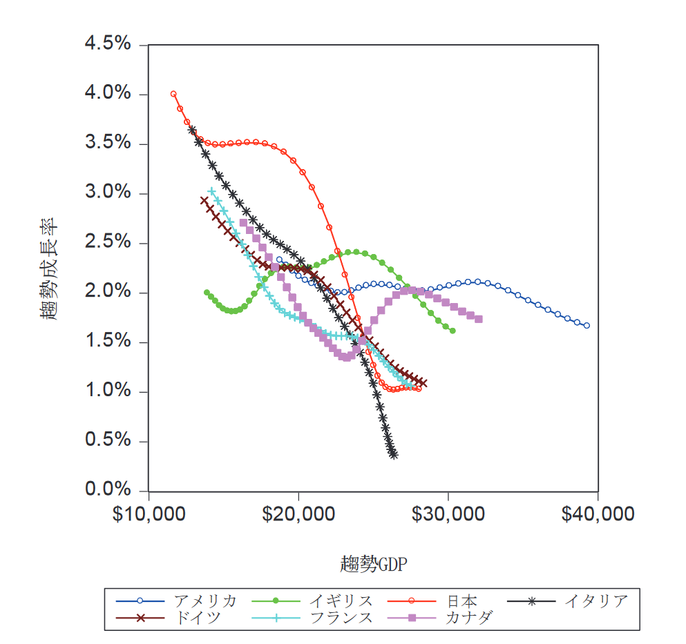 研究報告書 2011.01.01 何が日本の経済成長を止めたのか? この記事は分で読めます シェア Tweet 星岳雄 カリフォルニア大学サンディエゴ校国際関係・環太平洋研究大学院教授 アニル・K・カシャップ アニル・K・カシャップ シカゴ大学ブース・ビジネススクール教授 概要 日本経済の長期停滞の原因やバブル崩壊後とられてきた政策対応の評価等についてはこれまでにも多くの議論がなされてきているが、 日本は依然として持続的な経済成長を実現するための明確な道筋を見い出せずにいる。このため、総合研究開発機構(NIRA)は、 これらの問題を海外の視点から再検討を行うことを目的として「日本の潜在成長力プロジェクト」を立ち上げ、 カリフォルニア大学サンディエゴ校国際関係・環太平洋研究大学院の星岳雄教授ならびにシカゴ大学ブースビジネススクールのアニル・K・ カシャップ教授に対して調査研究を委託した。 その成果である本報告書は、日本経済の長期停滞の原因を解明し、経済成長を回復するために有効と思われる政策を提示するため、 ①1970年代以降に出現した様々な課題に対する適応の失敗、②バブル崩壊後の1990年代における政策の失敗、 ③構造改革を推進した小泉内閣の主要政策について評価を行うとともに、これにより明らかとなった教訓を踏まえて現政権が推進する 「新成長戦略」の検証を行い、日本が経済成長を回復するための政策転換のあり方について提言を行った。 全文を読む (3.7MB) 概要を読む (865.1KB) Full Report(English) (1.7MB) Executive Summary(English) (660.5KB) INDEX エグゼクティブサマリー 日本経済はもう20年近くも停滞している。このレポートの目的は、この停滞の原因を解明し、経済成長を回復するために有効だと思われる政策を提示することにある。もちろん現在の不況は世界的な金融危機によるところが大きいが、ここではこの不況から脱するための短期的な政策を論じるのではなく、意図的に長期的な視野に立って議論する。 議論の出発点として、新古典派的な経済成長のモデルを使って、戦後日本経済の成長を展望する。簡単なモデルであるが、日本経済の高度成長とその後の減速をうまく説明することができる。1970年代以前の日本経済は、非常に高い成長率を示した。いわゆる高度成長の時代である。しかし、1970年代に入ると、高度成長を支えた諸要因がおおきく変化してきた。第1に、日本が経済的にアメリカなどの先進国に追いつくようになってきた。これは、先進国の技術を模倣あるいは輸入することによって成長する追い付き型の経済成長がもはや不可能になったことを意味した。追い付き型の成長期には有効に機能した制度や慣行が、成熟した経済ではそれほどうまく働かないようになってしまった。 高度経済成長を支えた要因の1つは、固定相場制とその中で比較的安めに設定された円の為替レートであった。これが日本の輸出指向型成長を可能にした。1970年代に始まった金融のグローバル化と変動相場制への移行は、輸出指向型成長の持続を困難にした。これが日本経済が直面した第2の課題であった。日本経済は、輸出依存度を減らして、グローバルな経済に適した生産構造と経済制度を構築する必要に迫られた。 第3に高齢化の問題があった。日本の高齢化は他の先進国のどこよりも速く進んだ。経済成長の観点からすると、高齢化は労働投入量の成長率を鈍化させ、経済成長率を低下させる。また、高齢化と出生率の減少は、最終的には高度成長を支えた高貯蓄率を減少させることにもなった。 追付き型成長の終焉、グローバル化、そして高齢化が、日本経済の試練として立ちはだかった。日本は未だこれらの試練を乗り切ることに成功していない。そして1990年代には新たな問題が浮上した。民間投資は停滞し、生産性の成長率も下落した。わずか10年の間に、日本は高成長経済から停滞経済へと移行してしまった。高度成長が永遠に続くことはなく、経済が成熟するにつれて成長率は落ちるのが普通であるが、日本の成長率は、アメリカ、イギリス、カナダなど経済がほぼ同等あるいは日本以上に成熟していると思われる先進国に比べても低い。報告書の図4(文末に転載)は、G7諸国の1人当たりGDPのトレンド成長率とその水準の関係を示している(トレンドはHPフィルターにより算出)。1人当たりGDPが概ね2万5千ドルを超えると、アメリカ、イギリス、カナダの各国では定常的な成長率が1.7%程度に収斂するのに対し、日本はせいぜい1.0%程度の成長率に収斂している。したがって、高度成長が終わった今でも、アメリカ、イギリス、カナダなどと同程度の経済成長は可能なはずである。そのために何が必要か。日本はそれを問うべきである。 高度成長後の日本の政策は、この問いに満足のいく解答を出せなかっただけでなく、かえって経済を停滞させるような選択をしてしまった。このレポートでは、三種類の誤った経済運営を指摘する。一つは、1990年代の景気後退期にすべての企