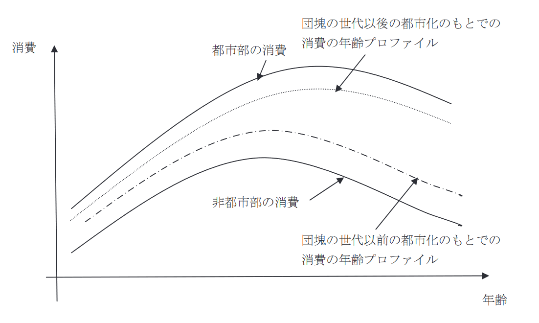 研究報告書 2011.12.01 新・家計消費論高齢層が支える都市部消費 この記事は分で読めます シェア Tweet 白川浩道 クレディ・スイス証券経済調査部長/NIRA客員研究員(座長) 宇南山卓 神戸大学大学院経済学研究科准教授 塩野剛志 クレディ・スイス証券経済調査部エコノミスト 神野真敏 NIRA研究調査部主任研究員 概要 今後、都市部に住む世帯数や全世帯に占めるシェアが高まる可能性が高い。本報告書は、この「都市化」に着目して、 消費市場規模の将来推計を行った。その結果、都市部における消費額が2025年頃までは増加基調を辿る可能性が高いことが明らかになった。 日本の高度成長期に都市部に流入・定着した団塊の世代が、高齢化した後も都市部に居住し続ければ、 都市部の世帯数は2010年の2,033万世帯から2025年には5.2%の増加の2,138 万世帯となる。 総世帯に占める都市部に居住する世帯の割合も2010年の39.9%から2025年には42.3%と増加する。すなわち、 都市部に居住する世帯数・シェアがともに高まるという「都市化」の進展が想定される。 この世帯数の都市化を前提に、都市部の消費規模の推計を行ったところ、2025年の都市部の消費規模は、2010年対比で2.9% 増加の113.9兆円となった。費目別にみると、住居関連、食料、保健医療、教養娯楽サービス等で増加することが予想される。また、 東京特別区に限れば、2025年以降も増加が続き、2030年には2010年対比でみて5.7%増加の26.6兆円となる。 全文を読む (1.7MB) Executive Summary (English) (205.1KB) INDEX エグゼクティブサマリー 都市部に居住する世帯数及びシェアは今後増加する。本報告書では、この「都市化」の動きに注目し、都市部(注1)の家計消費が 2025 年頃までは増加基調を辿る可能性が高いことを示す。 本報告書の主な結論は以下の通りである(第1章「『都市化』と家計消費の将来」参照)。●日本の高度成長期に都市部に流入・定着した団塊の世代が、高齢化した後も都市部に居住し続ければ、都市部に住む世帯の数・シェアともに高まる可能性が高い。つまり、都市部の労働力として経済成長を支えた団塊の世代の「世代効果」が「都市化」として顕在化する。●都市部と都市部以外(非都市部)に居住する家計は、異なる消費パターンや余暇の過ごし方をしている。さらに、世帯が高齢になるほど都市部の家計消費額が非都市部のそれを上回る傾向にある。これらは、日本全体でみた家計消費にも無視できない影響を与える。●シミュレーション分析によれば、2025年まで都市部の世帯数は増加基調を辿り、その家計消費も2025年頃まで増加基調を辿る可能性が高い。また東京特別区では、全国の都市部以上に世帯数は増加し、家計消費においても世帯数と同様に、一回り高い増加基調を辿る可能性があることが示された。●なお、本報告書のシミュレーション分析の結果は、都市部の将来消費額に対する下限推計値を提供するものとの解釈も可能である。都市部に居住する高齢者層による消費行動の積極化、都市部への居住に対する選好の高まりなどを背景に、都市部の消費市場の増加基調がより長期間維持される可能性も十分にある。【各論】第2章 「都市化」と消費トレンドに関する理論的整理 本章では、団塊の世代が高齢化していくことで顕在化していく都市化が消費にどのような影響を与えるかを理論的に整理した。 都市部と非都市部の間での消費行動の違いを明示的に考慮すると、時点ごとの都市部への人口集中度によって年齢別の消費のプロファイルが変化し得る(図表1)。これは、「世代による消費行動の違い」を「都市部と非都市部の消費パターンの違い」に帰着させることによって定量化しようとするものである。 実際のデータ(注2)を使って都市部と非都市部における消費行動の違いを見てみると、①都市部の家計は外食、被服・履物、教養娯楽用耐久財及び同サービス、理美容サービスなどの「選択的な消費」への支出が多い傾向にあるほか、②都市部の高齢者ほどより多くの自由時間を有しており、買い物や交際・付き合いなどの積極的な社会活動にあてていることなどが明らかになった。 図表1 都市化と消費のイメージ図 第3章 都市部における世帯数の将来推計 本章では、世帯数のトレンドに焦点を当てながら都市化の現状を考察した上で、「各世帯が今後も同じ人口規模の都市階級に住み続ける」という仮定の下で、都市部(全国主要都市)における世帯数の将来推計を行った。本推計の主な結果は以下の通りである(図表2)。●都市部に居住する世帯数は、2025年には2,138万世帯となり、2010年比で5.2%増加する。これは、二人以上世帯が減少するものの、単身世帯がそれを上回って増加するためである。●都市部の世帯数の総世帯に占めるシェアは、2010年の39.9%から2025年には42.3%へ上昇する。また、65歳以上世帯についてみると、2010年の36.0%から2025年には37.9%へ上昇する。●なかでも、東京特別区の世帯数は、2010年の440.4万世帯から2030年には481.3万世帯へと、9.3%増加する