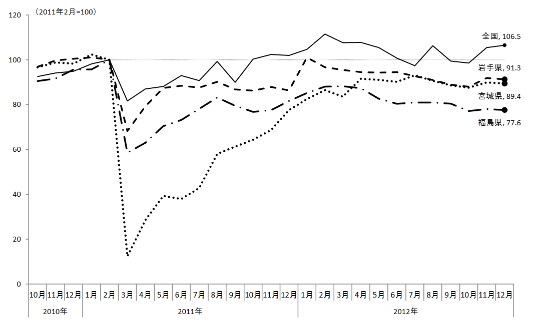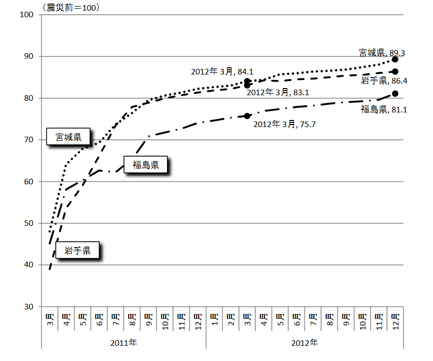 (出典)総合研究開発機構(2013)「東日本大震災復旧・復興インデックス(2013年3月更新)-データが語る被災3県の現状と課題Ⅲ