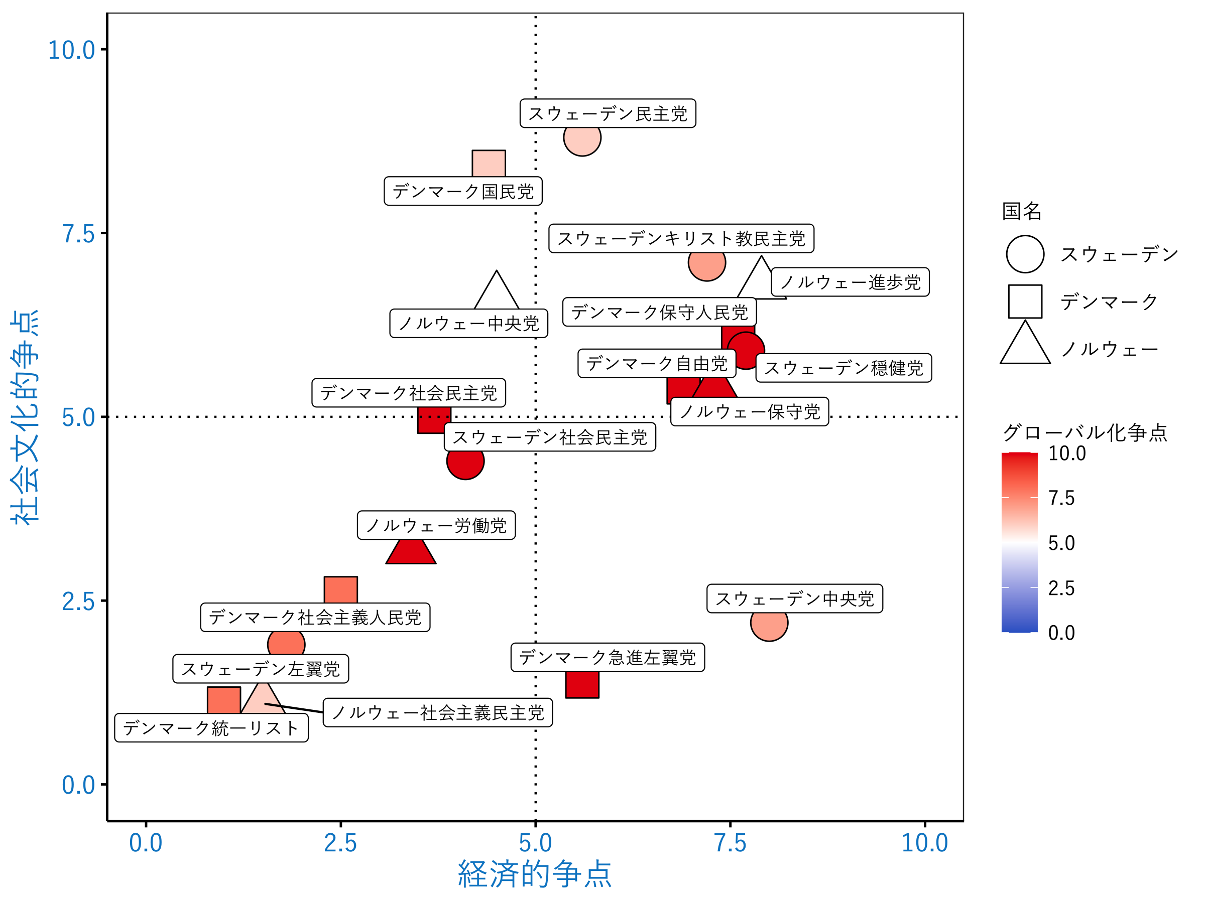 English version 研究報告書 2021.08.27 経済・社会文化・グローバリゼーションー第7章 北欧諸国ー この記事は分で読めます シェア Tweet 古賀光生 中央大学法学部准教授 概要 北欧諸国では、左右それぞれの立場を代表する政党が、大きな政治的な左右のブロックを形成し、中道近くに位置する有権者を奪い合う構図が見られる。しかし、90年代以降、その構図が大きく変化している。すなわち、急進右派やポピュリスト政党の支持が拡大する中で、既存政党だけでは政権を取ることができなくなり、明確に左右ブロックの固定化が進んでいる。北欧諸国では、全ての政党が賛成するコンセンサスをつくることが、過半数に達しない少数内閣によって試みられてきた。しかし、急進右派の出現によって政党間での合意が困難となり、過半数の賛成で可決する傾向が強くなっている。 北欧の急進右派は、拡張財政を主張し、反グローバル化や反緊縮の意見に対する受け皿としての役割を担っている。一方で、ヨーロッパ諸国で見られる極右政党とは、党としての傾向が異なる部分が多い。また北欧は、基本的にグローバリズムを前提として開放小国経済を採用しているため、他のヨーロッパ諸国でみられる反グローバリズム政党は存在しない。あくまでも、グローバリズムを前提とした中で、どのような形でグローバル化を進めるかの主張の違いで対立が生じ、主に移民受け入れの程度やEUとの距離の違いに政党の特徴が表れる。 一般的にヨーロッパにおける急進右派政党は、10〜25%程度の支持率がある。他国と同様に、北欧の急進右派も10%前後の岩盤支持層があるが、グローバル化が前提の北欧において、多くの国で言われる「グローバル化の敗北者(ルーザー)たち」からの支持は薄い。北欧の急進右派は、他の政党と同様に、支持層のネットワークが形成され、彼らの利益の代表者として意見集約している。また急進右派も含めた左右ブロック化は、有権者がどのブロックを支持するかを問うものとなり、ポピュリスト政党の今後を考える上で重要な視点となる。経済・社会文化・グローバリゼーション・総論 2020年の各国政党政治・第1章 フランス ・第2章 イギリス ・第3章 ドイツ ・第4章 イタリア ・第5章 オランダ ・第6章 スペイン ・第7章 北欧諸国 ・第8章 アメリカ ・第9章 韓国 PDFで読む (1.4MB) General Introduction & Country Summaries (623.1KB) INDEX 第7章 北欧諸国 極右政党が存在しない北欧 グローバル化を前提とした社会である北欧諸国 北欧における政党間競合の変化と左右のブロック化 少数内閣の伝統と、左右のブロック化の影響 別の形のグローバル化を主張する反グローバリズム政党 オルタナティブなグローバリズムの主張 新型コロナの打撃を受けた急進右派と、岩盤支持層 国際協調を前提とした北欧のポピュリズム 第7章 北欧諸国 極右政党が存在しない北欧 CHES調査における北欧諸国の各政党の各争点に関する位置には、異論はない。ただし、各国で想定するソーシャル・リベラルは異なり、同じ国内で各政党を比較する目的には優れているものの、国際比較には注意が必要である。 ヨーロッパ各国の経済争点には大きな違いはない。左から右までそれぞれの立場を代表する政党が、各国とも揃っている。しかし、社会文化的争点においては、各国で顕著な差がみられる。北から南へ、また西から東へと行くに連れて、政党の主張が全般的に右寄り、コンサバティブになっていく傾向がある。これはおそらく、有権者の動向を反映したものであろう。ヨーロッパ各国の有権者を調査しているEuropean Social Surveyのデータを見ても、例えば同性愛の権利に対する態度を見ると、オランダよりもオーストラリアの方が右寄り、すなわち同性愛の権利を認めないという立場の人が多い。 一方で、北欧に極右政党は存在しない。様々なメディアで北欧の特定政党に「極右」という表現を用いるケースが散見されるが、それは適当ではない。ヨーロッパにおける典型的な極右としては、ドイツ国家民主党やオーストリア自由党、ジャン=マリー・ルペンが党首だった頃のフランスの国民戦線が挙げられる。これらの政党を極右と見なす理由は、戦間期以来のナチスやファシズムとの人的ネットワークが要素として挙げられる。一方、そのようなネットワークと切り離されている北欧の政党を、「極右」と評価することは困難である。 CHES調査における「極右」の評価をみると、デンマーク国民党の社会文化争点が8.4と、デンマークの中では最右派であり、伝統文化を強調するナショナリスティックな政党と評価されている。しかしながら、同党がイスラム教徒を忌避する理由として挙げる「イスラム教が言論の自由を守らず、男女平等に反する」という開明的な反イスラム思想は今ではヨーロッパ全域で広がっている。デンマーク国内では8.4と大きく右寄りに評価されているが、ヨーロッパ全域でも最右派として評価するまでは至らないだろう。 CHES調査の評価に