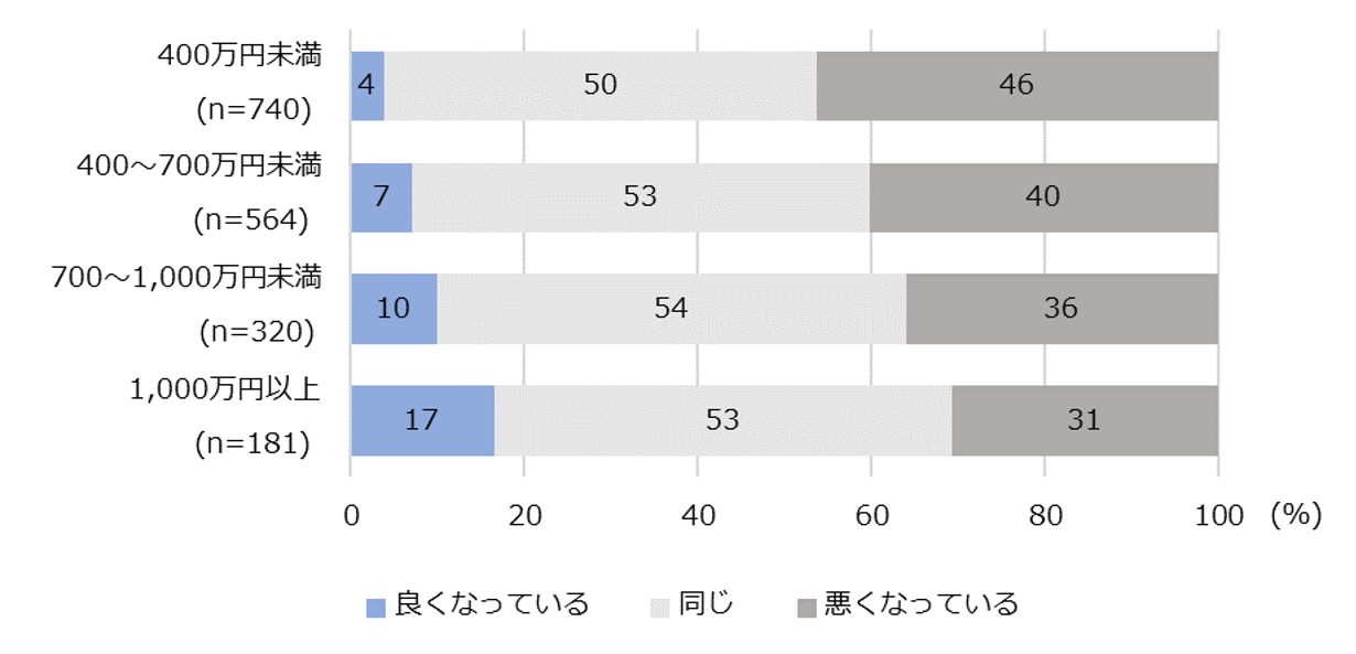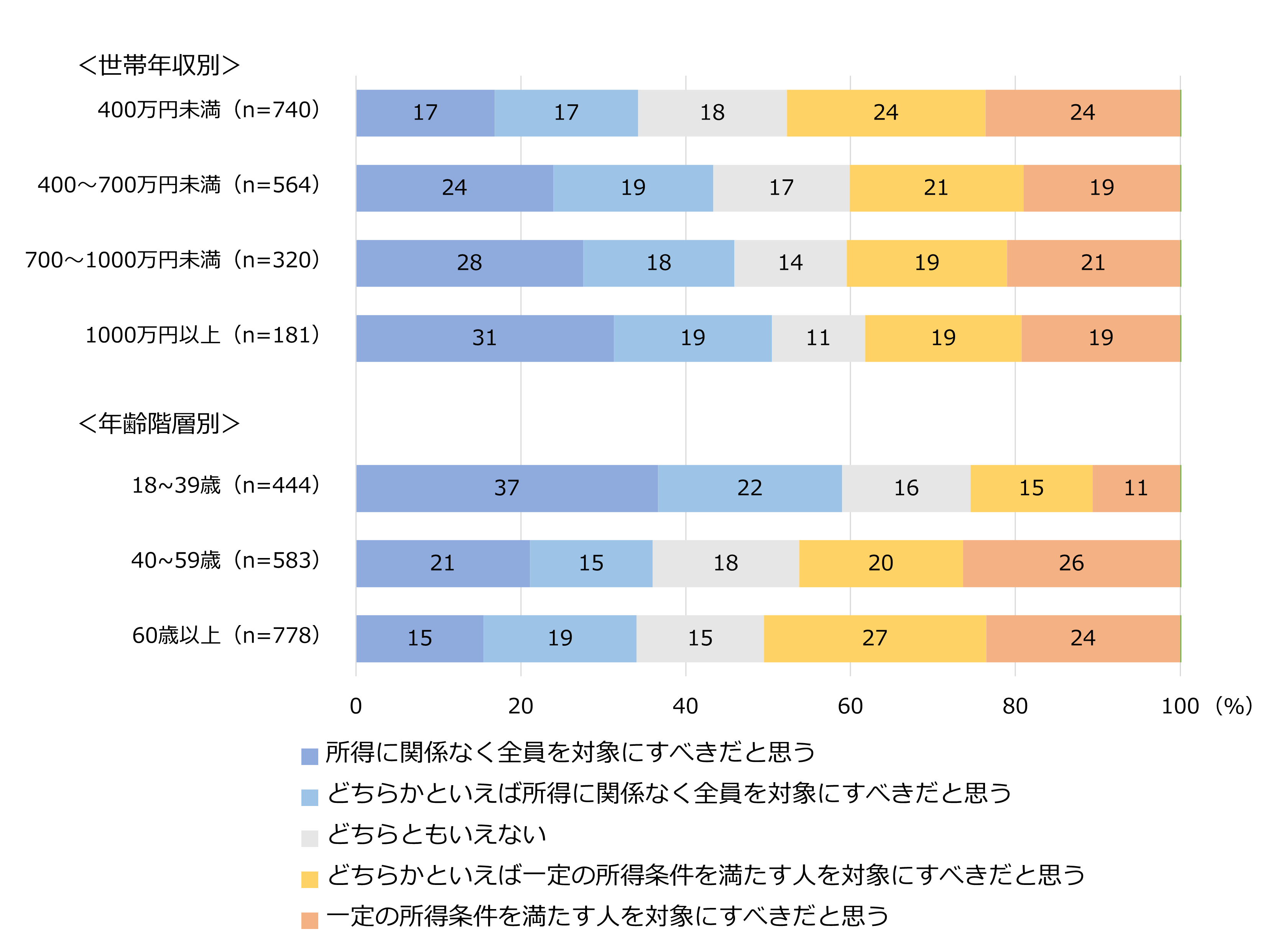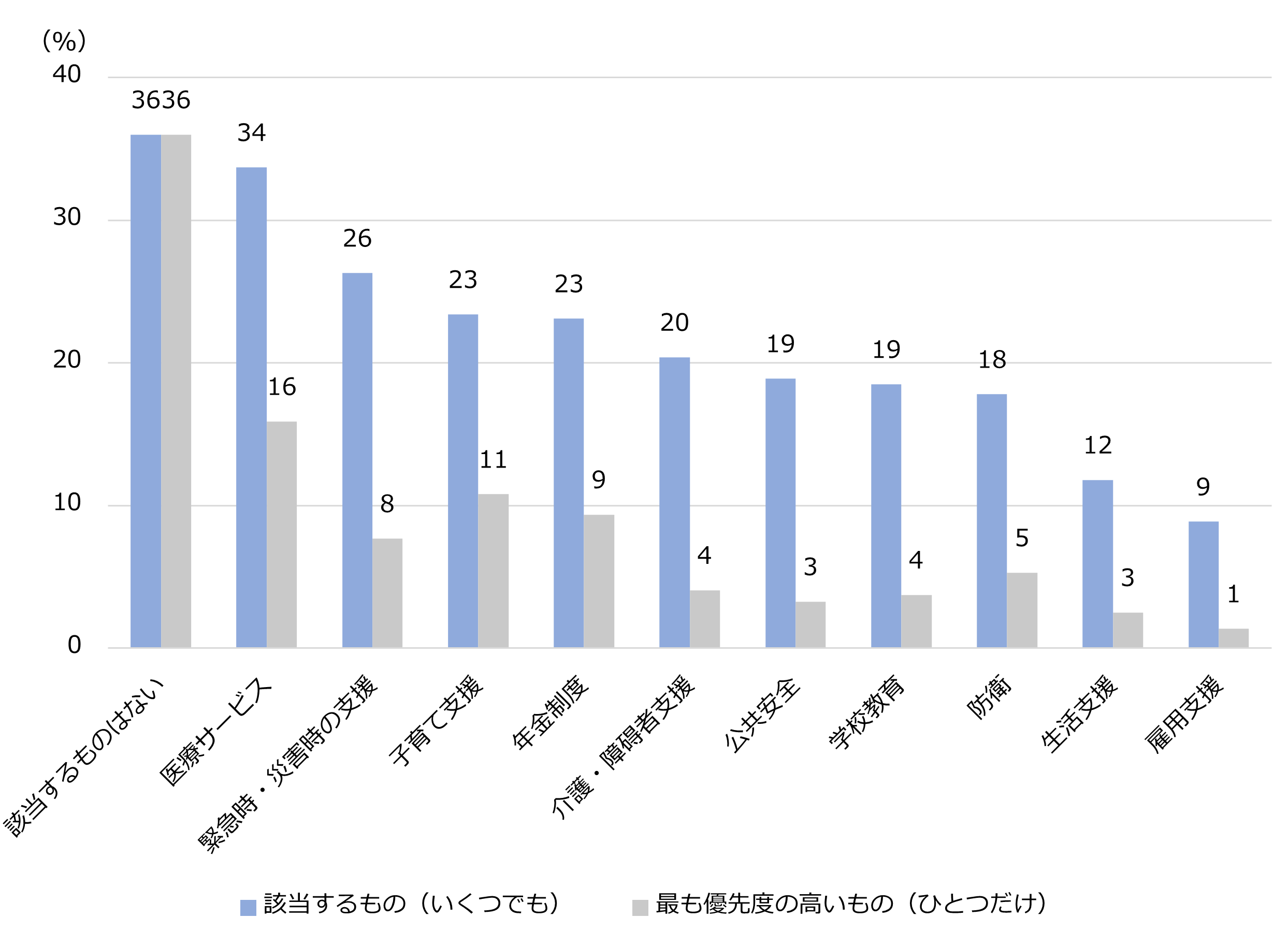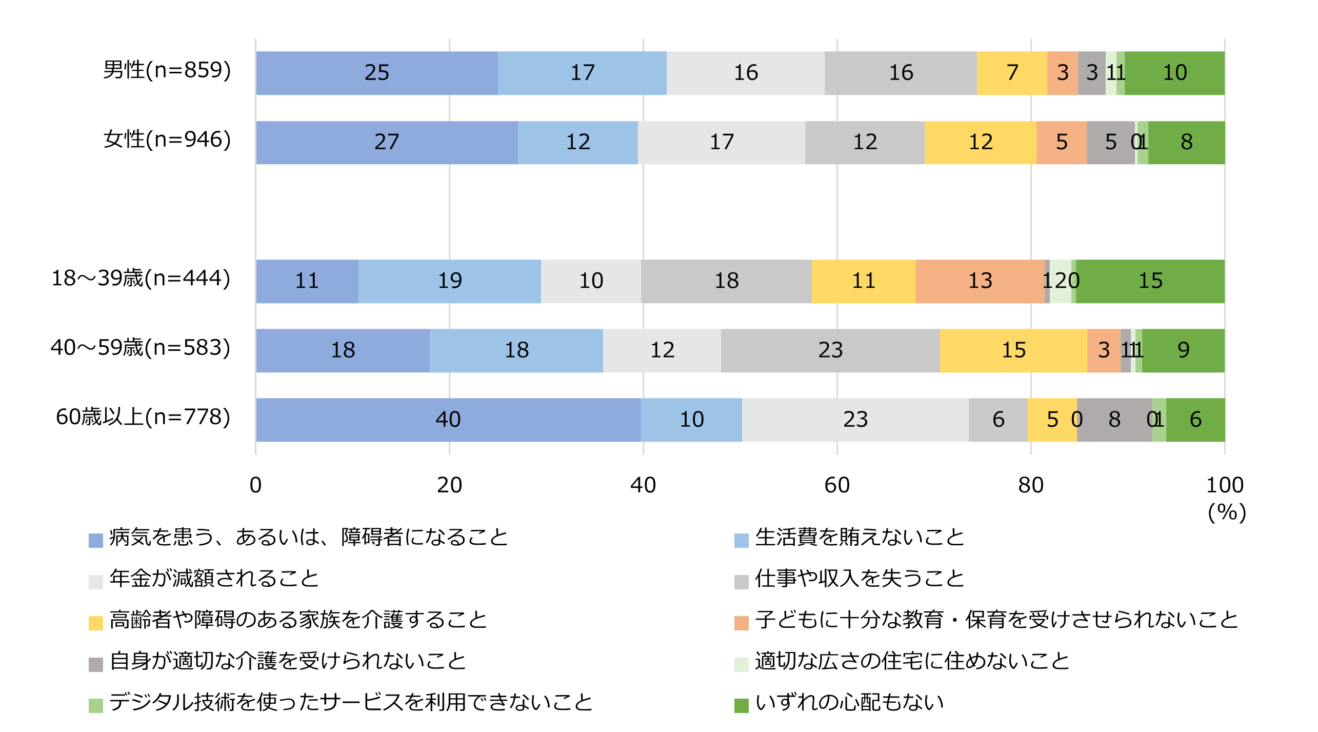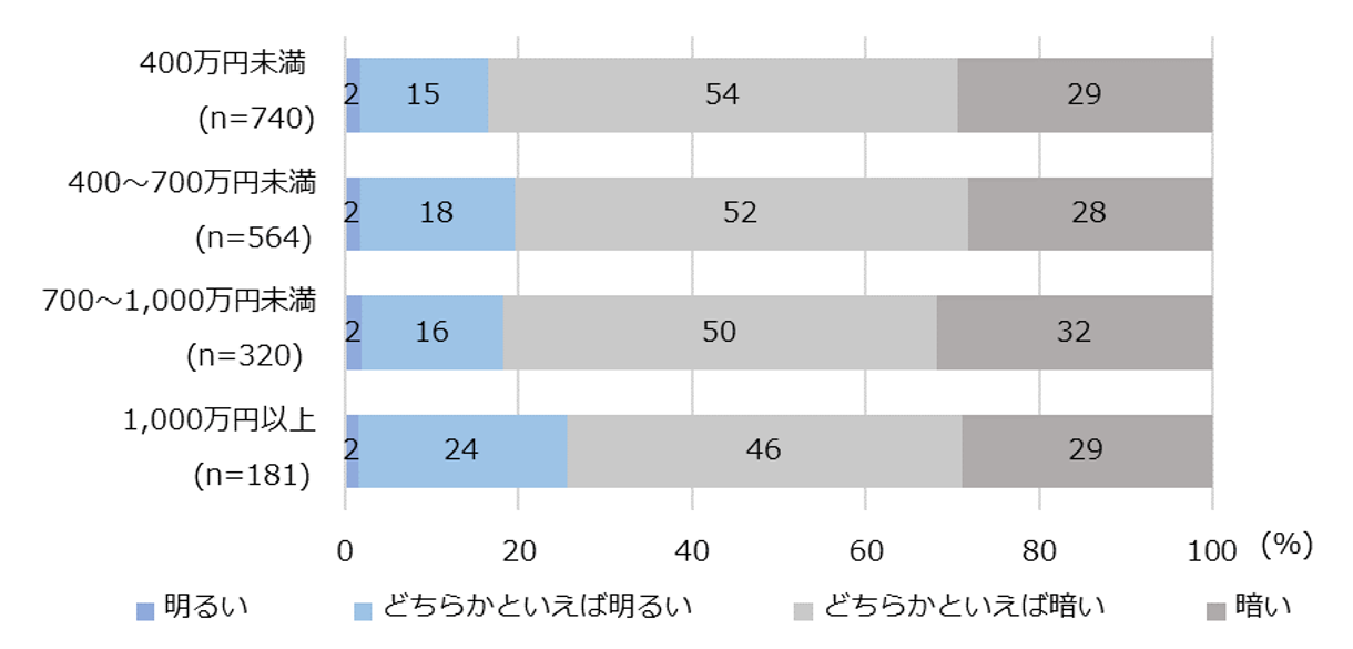 English version 研究報告書 2023.04.28 第1回政治・経済・社会に関する意識調査(NIRA基本調査)(速報) この記事は分で読めます シェア Tweet NIRA総合研究開発機構 最新の調査結果はこちら➡「第3回政治・経済・社会に関する意識調査」 概要 (公財)NIRA総合研究開発機構では、「第1回政治・経済・社会に関する意識調査(NIRA基本調査)」を実施した。本調査は政治・経済・社会に関連する人々の意識を定点観測することを目的としている。 調査は2023年3月16日(木)~2023年3月20日(月)にかけてオンラインで行われた。回収数は2,000件であり、うち有効回答数(トラップ設問をクリアした人)は1,805件だった(注1)。以下の速報結果は、トラップ設問をクリアした人のみを対象とし、「国勢調査(2020年)」の18歳以上の日本人を母集団とみなして、ウェイトによる補正を行った集計結果である(注2)。 速報を読む(2023年4月28日公表) (3.1MB) 調査票・単純集計結果を読む (1007.6KB) PDF (English) (229.1KB) INDEX Ⅰ 調査結果 1.政治分野 1.1. 長期的党派性と投票予定政党 1.2. 諸外国への親近感 1.3. 組織などへの信頼度と理由 1.4. 政治的有効性感覚・ポピュリズム態度 2.経済分野 2.1. 世帯の家計状況の変化 2.2. 世帯の家計状況、日本の経済状況の見通し 2.3. 個人の将来の心配事 2.4. 社会の将来の心配事 2.5. デジタル化や技術革新の影響に関する認識 2.6. 生活時間 2.7. 地域、ボランティア、副業、SDGs、グリーン・ジョブに関する活動状況 2.8. 環境に配慮した活動 3.社会分野 3.1. 社会に対する考え方 3.2. 公的サービスに対する考え方 3.3. 人々の社会意識 Ⅱ 調査概要 1.調査の趣旨・目的 2.調査名 3.主な調査項目 4.調査期間 5.調査方法 6.回収数 7.本報告書の集計方法 8.回答者の属性 9.研究体制 ポイント●組織などへの信頼に関して、「家族」、「自衛隊」、「裁判所」、「警察」、「お住まいの市町村」は70%以上の人が信頼している一方、「国会」、「政府」、「SNS(ツイッター・インスタグラムなど)」、「インターネットメディア(ニュースアプリ・サイトやブログなど)」は60%以上の人が信頼していないことがわかった。●「自分は、政治に関心がある方である」に肯定的な回答は50%を下回る一方、「現在の政党は既得権益にとらわれており、より直接的に人々の意思を代表するリーダーが現れてほしい」、「たいていの政治家が気にしているのは、裕福で力のある人々の利益である」に肯定的な回答は70%を上回った。●日本の経済状況の見通しについて、悲観視する人が多く、「暗い」または「どちらかといえば暗い」と回答した人は、近い将来(1~2年後)でも中長期的な将来(5~10年後)でも80%以上となった。●社会の将来の心配事として、近い将来でも中長期的な将来でも、「食料やエネルギー価格の高騰」、「経済成長の鈍化による生活苦」、「自然災害や疫病の発生」、「近隣諸国での武力衝突」、「財政悪化で行政サービスを受けられなくなること」をあげる人が多かった。●直近の「通常の1週間」の学習・自己啓発・訓練の時間はゼロの人の割合が最も高く、多くの人が自己研鑽に時間を投資できていないことがわかった。また、テレワーク利用者ほど自己研鑽の時間を確保できていることがわかった。●国債発行は抑制するべきと考える人の割合は、財政赤字を心配する必要はないと考える人の割合を上回った。また、「個人所得税を引き上げるときには、高所得者の税率を引き上げるべき」と考えている人の割合は60%を超えた。●「チャンスがあれば転職する方がよい」と回答した人の割合は、同じ企業に長く務める方がよい」と回答した人の割合を大きく上回った。特に若年層ほどこの傾向がみられた。●公的サービスの水準向上のための追加負担の意思を聞いたところ、64%の人が支払う意思があることがわかった。その項目として回答が多かったのは、「医療サービス」、「緊急時・災害時の支援」、「子育て支援」、「年金制度」だった。一方、回答が少なかったのは、「防衛」、「生活支援」であり、最も低いのは「雇用支援」だった。●国や自治体の支出について、現在のサービス水準を維持したまま、無駄をなくすことで最も支出を減らせると考えられている費用は「行政の人件費」であった。また、どの費用も1~2割程度無駄があると考えている人が最も多かった。 図表図1-1-1 長期的党派性図1-1-2 年齢階層別にみた長期的党派性図1-1-3 投票傾向―長期的党派性と今後の比較-図1-2 諸外国への親近感図1-3 組織などへの信頼度図1-4-1 政治的有効性感覚・ポピュリズム態度図1-4-2 年齢階層別・投票別にみた政治的疎外意識図2-1-1 世帯の家計状況の変化図2-1-2 男女別、年齢階層別にみた世帯の家計状況の変化(新型コロナウイルスの感染拡大前との比較)図2-1-3 世帯所得別にみた世帯の家計状況の変化(新型コロナウイルスの感染拡大前との比較)図2-2-1 世帯の家計状況の見通し図2-2-2 日本の経済状況の見通し図2-2-3 男女別、年齢階層別にみた中長期(5~10年後)の日本の経済状況の見通し図2-2-
