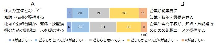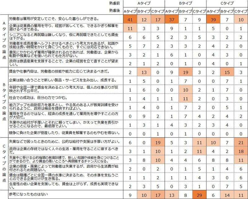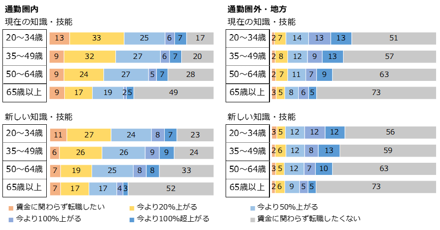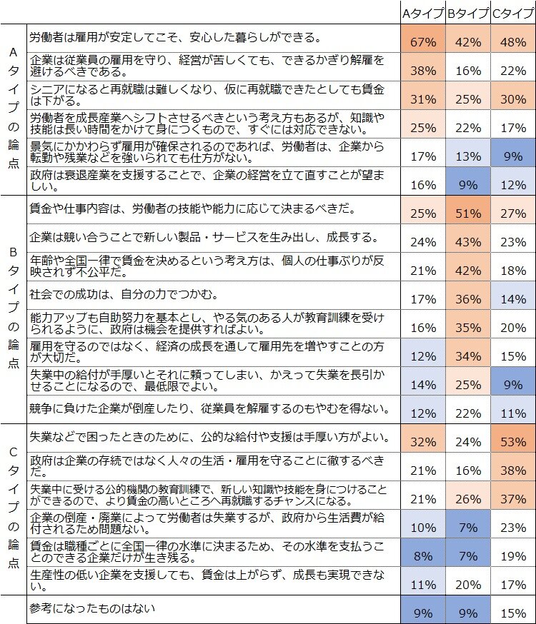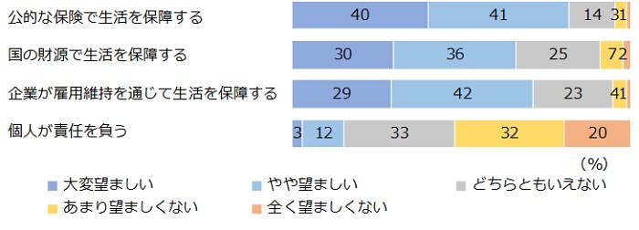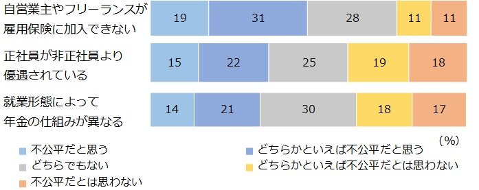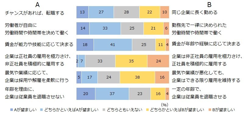 研究報告書 2023.08.17 これからの働き方に関する就業者の意識熟慮型アンケート調査から考える この記事は分で読めます シェア Tweet 水島治郎 NIRA総合研究開発機構上席研究員/千葉大学教授 翁百合 NIRA総合研究開発機構理事/日本総合研究所理事長 関島梢恵 NIRA総合研究開発機構研究コーディネーター・研究員 ※本調査の個票データはこちら 概要 雇用政策を議論するにあたり、働き方や雇用をめぐる人びとの意識や考え方を理解することは不可欠である。労働者が企業・産業の枠を超えて成長産業に移動し、能力や志向を活かして就労できる仕組みが求められる現在、従来の日本の雇用慣行とは異なる労働市場モデルや雇用政策の考え方に対し、人びとはどのような意見を持っているのか。本調査では、雇用に関わるさまざまな論点を「熟慮」するプロセスを通し、就業者個人の思考を探った。 主な結果として、雇用の安定性を望む声が多い一方、転職に対して前向きな姿勢を持つ人も多いことがわかった。新しい知識・技能の習得を必要とするような転職に対しても、考える余地があるという人が一定程度見られる。ただし、地域を跨ぐ転職には抵抗感もありそうだ。また、能力給を望む声もかなり見られ、アメリカのような市場原理主義の労働市場モデルへの支持につながっている。他方、スウェーデン(北欧)のように、失業時の手厚い公的給付・支援がある労働市場モデルを評価する人も少なくない。 日本、アメリカ、スウェーデンそれぞれの労働市場モデルを特徴づけるさまざまな論点を熟慮した上で、就業者が重視する点が個人個人で異なるという事実は重要だ。それぞれの特徴を生かし、企業や職業によって多様なモデルを提供して、労働者個人が安心して自分の働き方を選択できる社会を作っていく必要がある。 エクゼクティブサマリーを読む (180.1KB) 全文を読む (2.2MB) INDEX 第1章 働き方や雇用をめぐる就業者の意識・考え 1.調査の趣旨 2.働き方や雇用に対する希望 3.現行制度に対する不公平感 4.リスクに対して望む保障 5.労働市場・雇用政策モデルに対する考え 第2章 転職と教育訓練をめぐる就業者の意識・考え 1.地域・分野を超えた転職 2.教育訓練 第3章 社会のあり方をめぐる就業者の意識・考え 1.受益と負担のあり方 2.所得格差への意識 第4章 まとめ 付録1 調査概要 調査名 調査方法 調査機関 調査実施期間 調査対象 研究体制 ポイント●3つの労働市場・雇用政策モデルを比較 回答者に対し、日本、アメリカ、スウェーデンの3タイプの労働市場・雇用政策モデルを提示し、各モデルの特徴や論点をよく読んでどれがいいと思うかを答えてもらう熟慮型調査を実施した。最も支持されたのは日本タイプであったが、自由市場的なアメリカタイプや、公的なセーフティーネットが手厚いスウェーデンタイプを支持する人も少なくなかった。●能力給やエイジレス雇用への支持 賃金は年功型ではなく能力給を望む人が約6割に上り、エイジレス雇用を支持する人も6割近くいるなど、従来の日本の雇用慣行とは異なる雇用のあり方を望む人は比較的多かった。特に、アメリカタイプの労働市場・雇用政策モデルを支持する人は、賃金や仕事内容が技能や能力に応じて決まる点を評価していることがうかがえた。●地域・分野を超えた転職への意欲 若年層を中心に、転職によって賃金等の条件を改善する意欲や、スキルアップを伴う転職への前向きな姿勢が見られた。ただし、転職への意欲は現在の居住地域に限定される傾向があり、都市部であれ地方であれ、現在の通勤圏を跨いで移動する転職には消極的な人が多い。 図表図1-1 働き方や雇用に対する希望図1-2 現行制度に対する不公平感図1-3 リスクに対して望む保障表1-4 はじめ(熟慮前)に提示した労働市場・雇用政策モデルの説明図1-5 望ましい労働市場・雇用政策モデル表1-6 熟慮のステップで提示した労働市場・雇用政策モデルの説明図1-7 労働市場・雇用政策モデルで参考になった論点表1-8 熟慮後の意見別・参考になった論点表1-9 熟慮を経た意見の変化(%)表1-10 意見の変化別・最も重要だと思う論点図2-1 地域・分野を超えた転職への意欲図2-2 地域・分野を超えた転職への意欲(年齢別)図2-3 仕事の能力アップに対する考え図2-4 教育訓練の受講内容、役に立ったもの図2-5 身につけたい知識・技能図2-6 プログラミング、AI・データ分析を身につけたい人の割合(性・年齢別)表2-7 1番身につけたい知識・技能を学ぶ費用の負担主体(負担割合の平均、%)図2-8 教育訓練に求める制度・政策図3-1 受益と負担のあり方表3-2 受益と負担のあり方(クロス集計、%)図3-3 受け入れられる国民負担率図3-4 負担を増やしてもよいと思う項目図3-5 受け入れられる下位10%の所得水準(税引き前)図3-6 受け入れられる上位10%の所得水準(税引き前)図3-7 受け入れられる下位10%の所得水準(税引き後)図3-8 受け入れられる上位10%の所得水準(税引き後)付録表 性・年齢・居住地別回収数(省力回答者除外) 第1章 働き方や雇