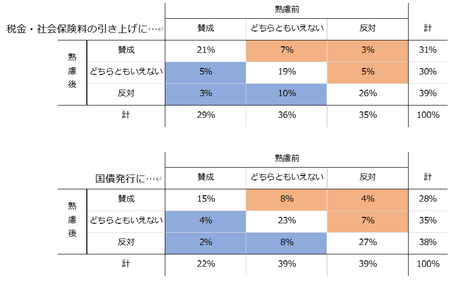 研究報告書 2024.02.20 AIは民主主義を深化させるか?少子化政策の財源に関する調査実験 この記事は分で読めます シェア Tweet 谷口将紀 東京大学大学院法学政治学研究科教授/NIRA総合研究開発機構理事長 鈴木壮介 NIRA総合研究開発機構研究コーディネーター・研究員 竹中勇貴 NIRA総合研究開発機構研究コーディネーター・研究員 概要 人の役割をAIが代替する局面が増えているが、政治的熟議にAIは活用できるのであろうか。熟議の要諦は、人々が様々な情報に触れながら自らの意見を再考・修正するところにある。人々の情報収集をAIが支援するなど、熟議の過程にAIを介入させたとき、人々の意見形成にどのような影響が及ぶのか。 本プロジェクトでは、少子化政策の財源は税金・社会保険料と国債のどちらがよいかという争点を例に、熟議におけるAI活用の可能性を探り、以下の結論を得た。第1に、将来世代の意見を人間が予測してもAIが生成しても、その意見を見ると、将来世代の意見に接しないときと比べて人々は税金・社会保険料の引き上げに肯定的で、国債発行に否定的になる。第2に、将来世代の意見をAIが生成した場合も、人間が作った場合から少子化対策の財源に関する人々の考え方の変化に大差は見られなかった。第3に、人が提示した論点は自己中心性バイアスがみられるのに対し、AIが提示した論点はより多様な視点に立っており、かつ多くの回答者から重要な論点として評価された。 これらの知見は、民主政治における意見の提示や論点の設定という人間の役割を、AIは不自然ではない程度に代替できることを示唆している。 エグゼクティブサマリーを読む (189.2KB) PDFで読む (12.4MB) INDEX 第1章 研究の動機 1.熟議におけるAI活用の可能性 2.少子化政策の財源問題 第2章 研究方法 1.論点の抽出 2.論点に対する意見と動画の作成 3.人々の意見の変化の集計方法 第3章 調査結果 1.将来世代の意見を見ることによる影響 2.将来世代の意見をAIが作成したことによる影響 3.論点をAIが作成したことによる影響 第4章 結論 付録1 事前調査概要 付録2 本調査概要 付録3 本調査の質問票と単純集計結果 付録4 本調査の動画のスクリプト ポイント●人々が少子化政策の財源に関する論点について考えると、自身の損得を優先的に考える自己中心性バイアスを帯びた視点が多くなった。●AIが少子化政策の財源に関する論点を抽出すると、専門家が発信している論点を包括する傾向が見られた。●AIが抽出した論点についても人々は重要だと考えており、AIを活用した論点設定の有効性がうかがえた。●人々がこれから生まれてくる将来世代の意見を見ると、少子化政策の財源確保のために税金・社会保険料の引き上げに肯定的になる一方、国債発行には否定的になった。●将来世代の意見を、人間が予測した場合でもAIが生成した場合でも、人々に与える影響について有意な差は見られず、双方を比べても遜色ない結果となった。●AIが生成した将来世代の意見を見た回答者に、違和感があったかどうかを聞くと、64%が「違和感はなかった」と回答した。図表図2-1 人々が考える少子化対策の財源図2-2 少子化対策の財源に関する論点表2-3 論点ごとの回答要旨表2-4 6つの動画の内容図2-5 本調査の概要表3-1 熟慮前後での意見分布図3-2 将来世代の意見の有無による考え方の変化図3-3 将来世代の有無での比較図3-4 AIが意見を作成したことによる考え方の変化図3-5 人の意見、AIの意見での比較図3-6 AIの意見への違和感図3-7 AIが論点を作成したことによる考え方の変化図3-8 人の論点、AIの論点での比較図3-9 人が重要だと思う論点 第1章 研究の動機 要旨 人の役割をAIが代替する局面が増えているが、政治的熟議にAIは活用できるのであろうか。熟議の要諦は、人々が様々な情報に触れながら自らの意見を再考・修正するところにある。人々の情報収集をAIが支援するなど、熟議の過程にAIを介入させたとき、人々の意見形成にどのような影響が及ぶのか。これが本研究の動機である。 本稿では、少子化政策の財源は税金と国債のどちらがよいかという争点を例に、熟議におけるAI活用の可能性を探る。 1.熟議におけるAI活用の可能性 研究の趣旨 AI(Artificial Intelligence、人工知能)は民主政治の味方か、それとも敵か。NIRA総合研究開発機構のプロジェクト「AIを活用した熟議プラットフォームの形成」は、熟議民主政治に対するAIの活用可能性を検討した。 AIによるチャットツールとして、ChatGPTは広く知られている。ChatGPTは、OpenAIが開発した言語モデルの1種で、膨大なテキストデータの学習を通じて、ユーザーが与えた入力に対する応答を生成でき、尋ねた質問に答えたり、対話を行ったりする。 そこでは政治や経済に関するトピックスも対象になりうるが、将来さらにAIの技術が進んだとしても、AIが政治家を完全に置き換え、民主政治のすべてを担うことは難しい。民主政治とは決定された結果のみならず、その決定に至る過程も含むものだからである。もし、民主政